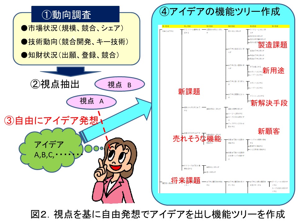 ご依頼のテーマで技術者と機能鳥瞰マップを作成し、他社出願が少なく重要課題について技術者と一緒に発明を抽出し、発明提案書を作成いたします。