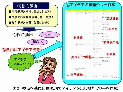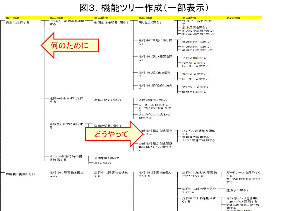 - まとめた機能ツリーを更に拡大し、新規アイデア発掘